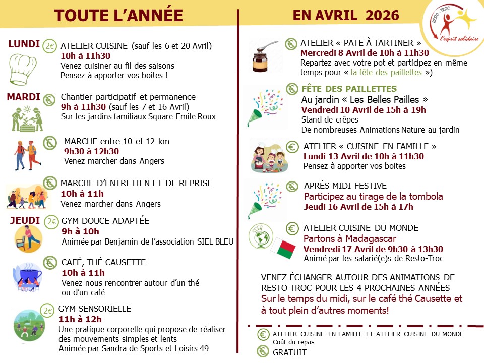 Réservation conseillée au 02 41 73 88 12 ou par mail à contact@resto-troc.fr